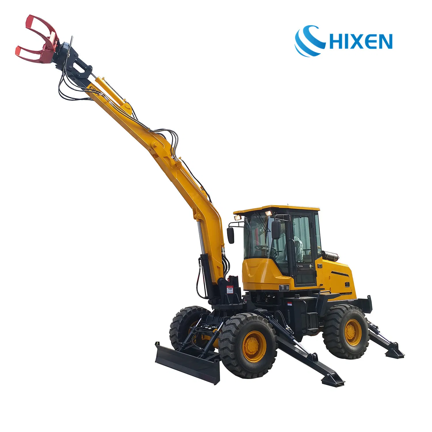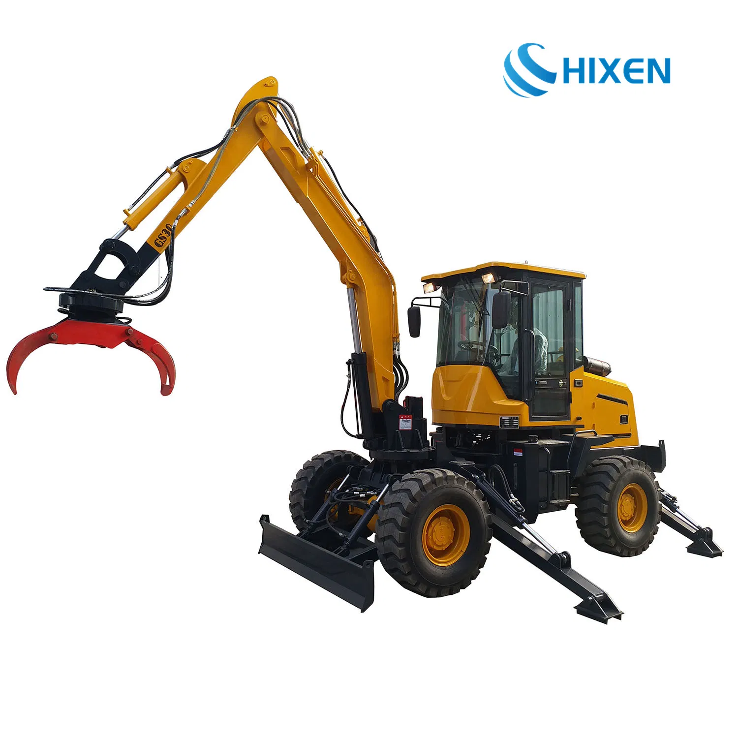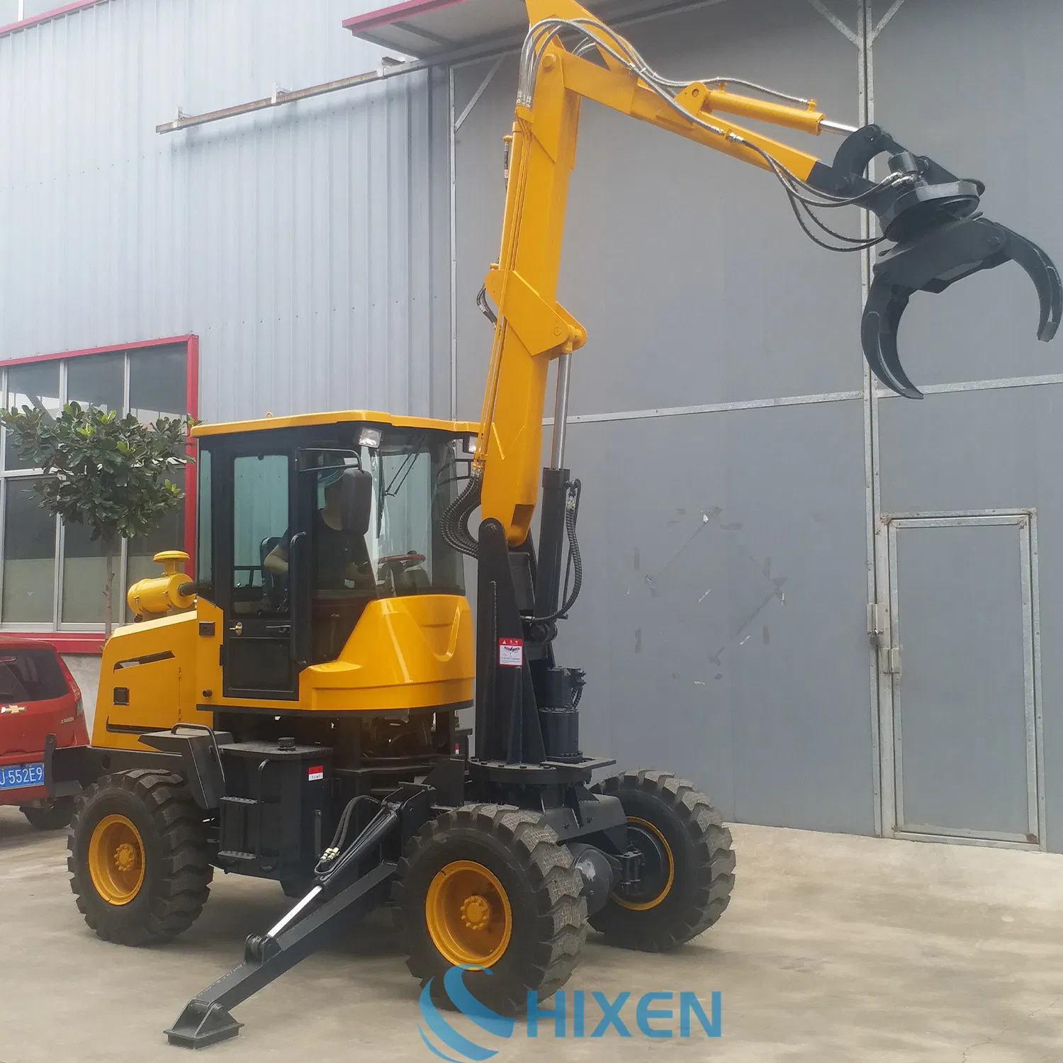 e 3.0 Ton Hydraulic Digger Wheel Excavator with log grapple for Sale