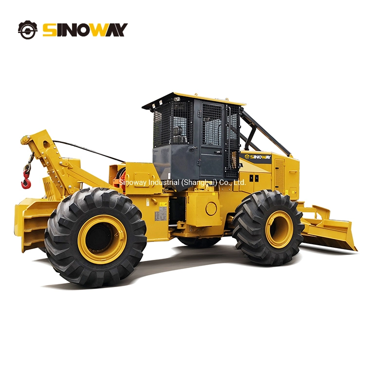 Purpose Integral cab equipped with reinforced frame , safe and reliable. The rear axle is equipped with limited slip differential to avoid slipping of the tire. The new generation of SINOWAY skidder is widely used in the collection & transportation of various kinds of wood under the working condition of primitive forest.