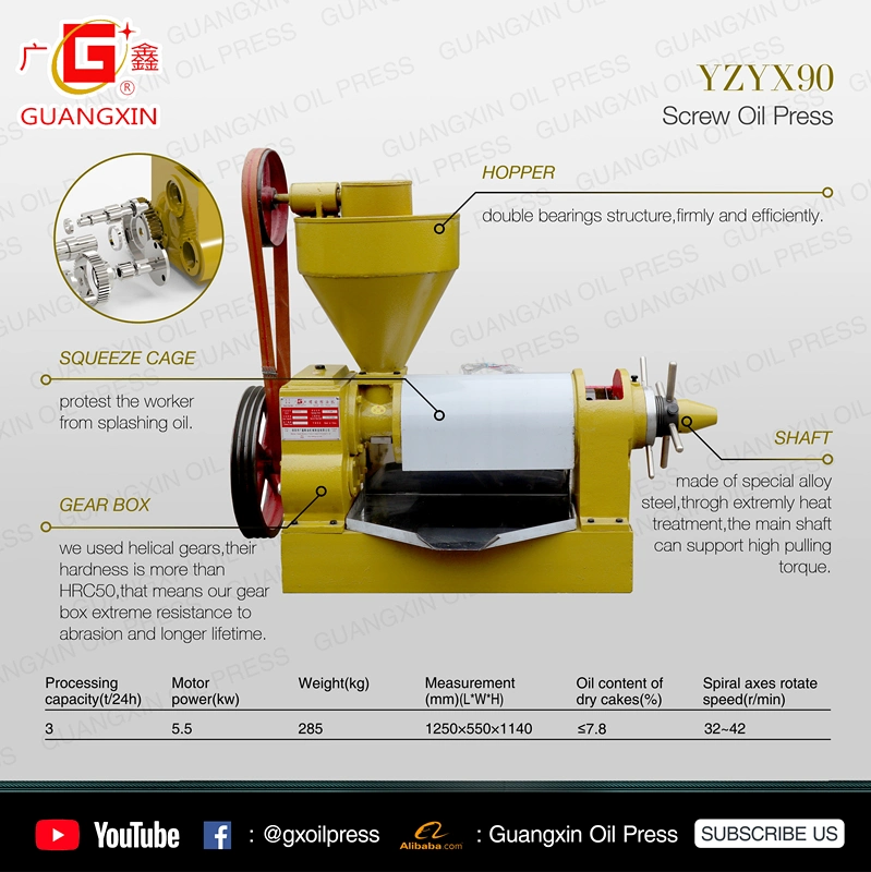 Best Price Peanut Soybean Palm Oil Extraction Pressers Machine Coconut Sunflower Seeds Oil Expeller with Capacity 3TPD30YEARS FACTORY OF OIL PRESS MACHINE ---GUANGXINOil Press Oil Mill Oil Extraction Oil Processing Machine Oil Filter Oil Refinery Seeds Roaster MachinneSPIRAL OIL PRESS YZYX90Processi......