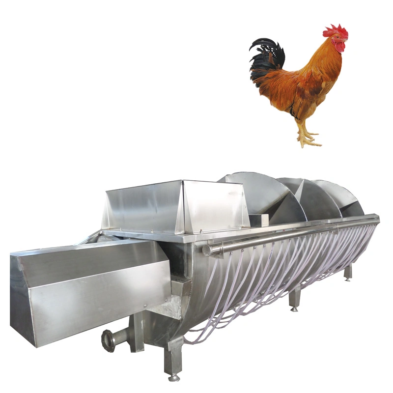 3.poultry carcass from curved scalding pool directly into Horizontal hair removal machine.