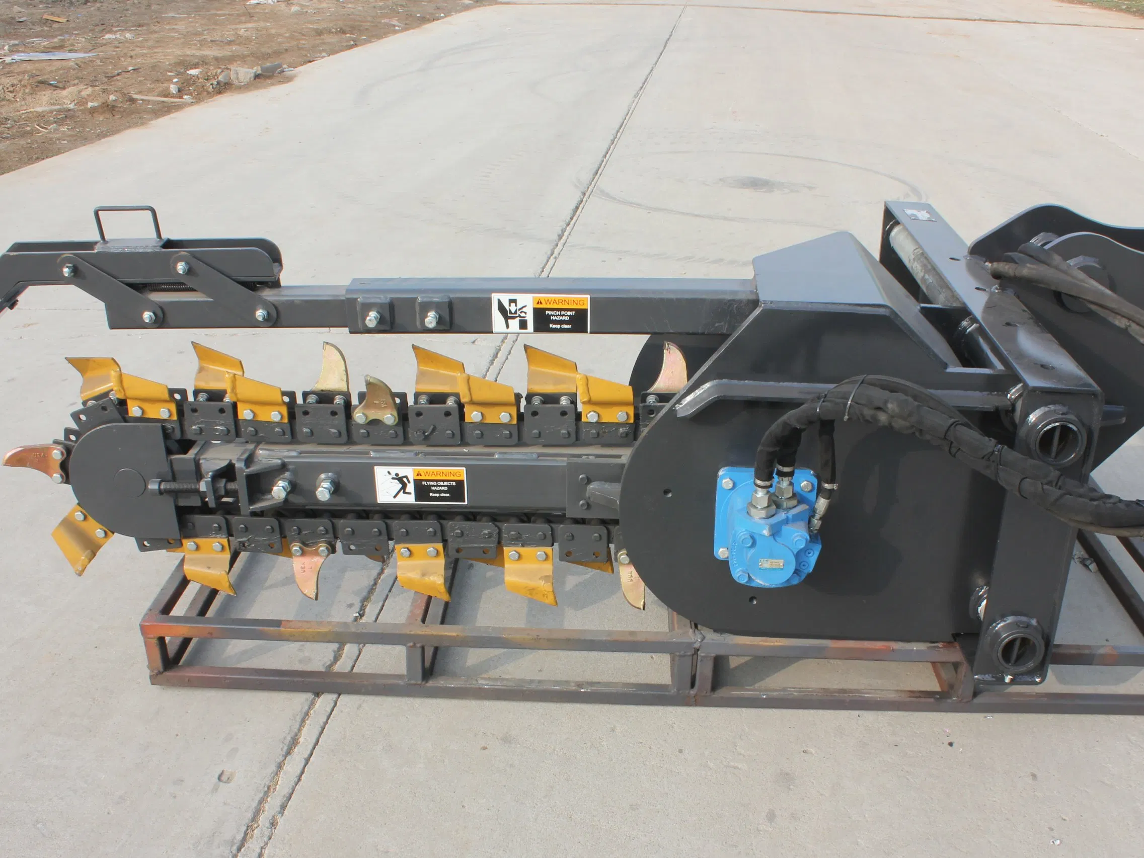 1) This product is a continuous mode trencher that can be mounted on skid steer loaders and excavators.