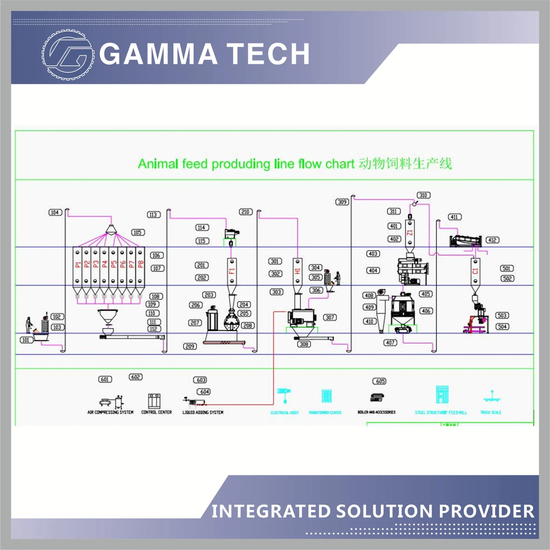 Animal Feed Production LineRaw materialscorn,wheat bran,fish meal,bone powder,meat,alfafa,grassetc.Diameter of feed pellet2-10mmApplicationfeed pellet machine/plant widely be used for home,poultry and livestock farm.Capacity1-10T/H,also can customized according to your demandProcess Stepcrushing-mix......