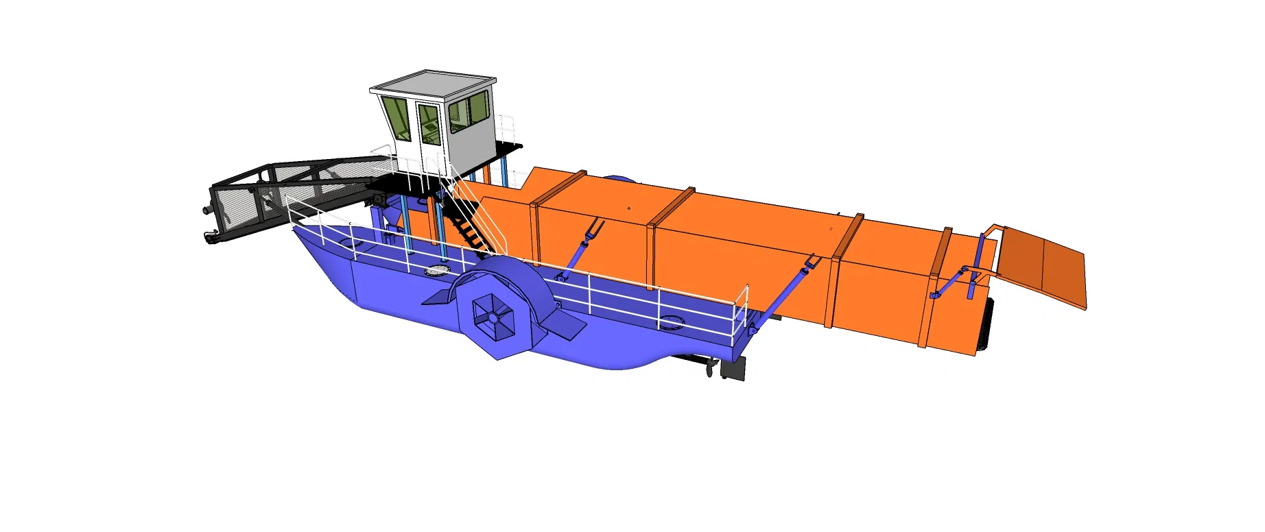 KEDA Aquatic Weed Harvester offer an environmentally sound method of controlling excessive aquatic plant growth and nuisance vegetation in waterways of all sizes. These heavy duty work boats are highly efficient in the management of submerged, emergent and free floating aquatic vegetation.