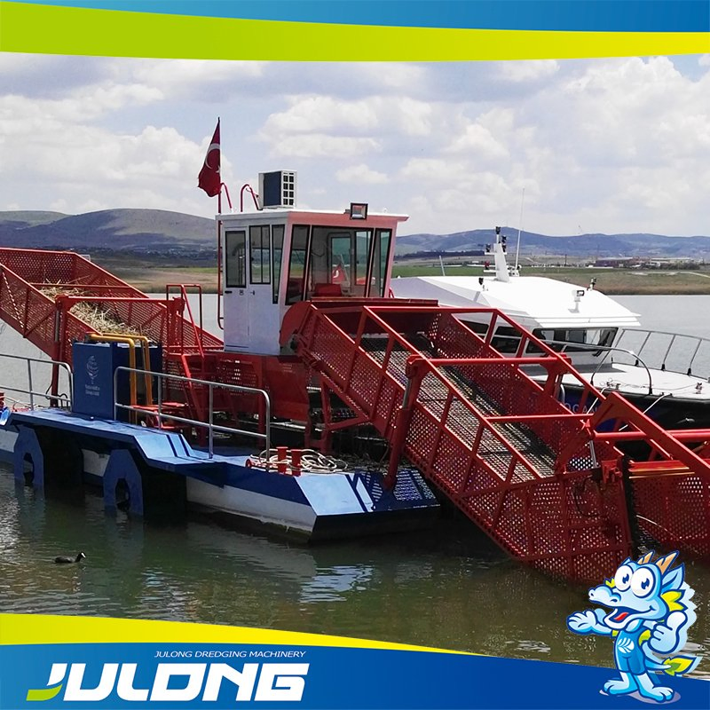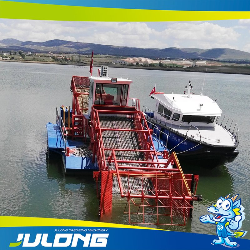 China Supplier of Aquatic Trash Skimmer for Cleaning Water Weed Floating Garbage1.General Introduction of JULONG Aquatic Trash Skimmer or Aquatic Weed HarvestersJULONG aquatic weed harvesters (or water weed harvesters, or aquatic trash skimmers) are usually used in river, lake, reservoir and coasts for cutting, collecting, storing and transporting waterweeds and floating garbage. The harvester can not only cut and collect all kinds of aquatic weeds, reeds, water hyacinth, but also collecting garbage, leaves and other waste in water. All of the equipment can work automatically and can save much labor force for its high efficiency. It is driven by hydraulic system and operated by one person, with the characteristic of simple structure, flexible movement and easy operation, which makes it an important environment friendly machine in water cleaning.