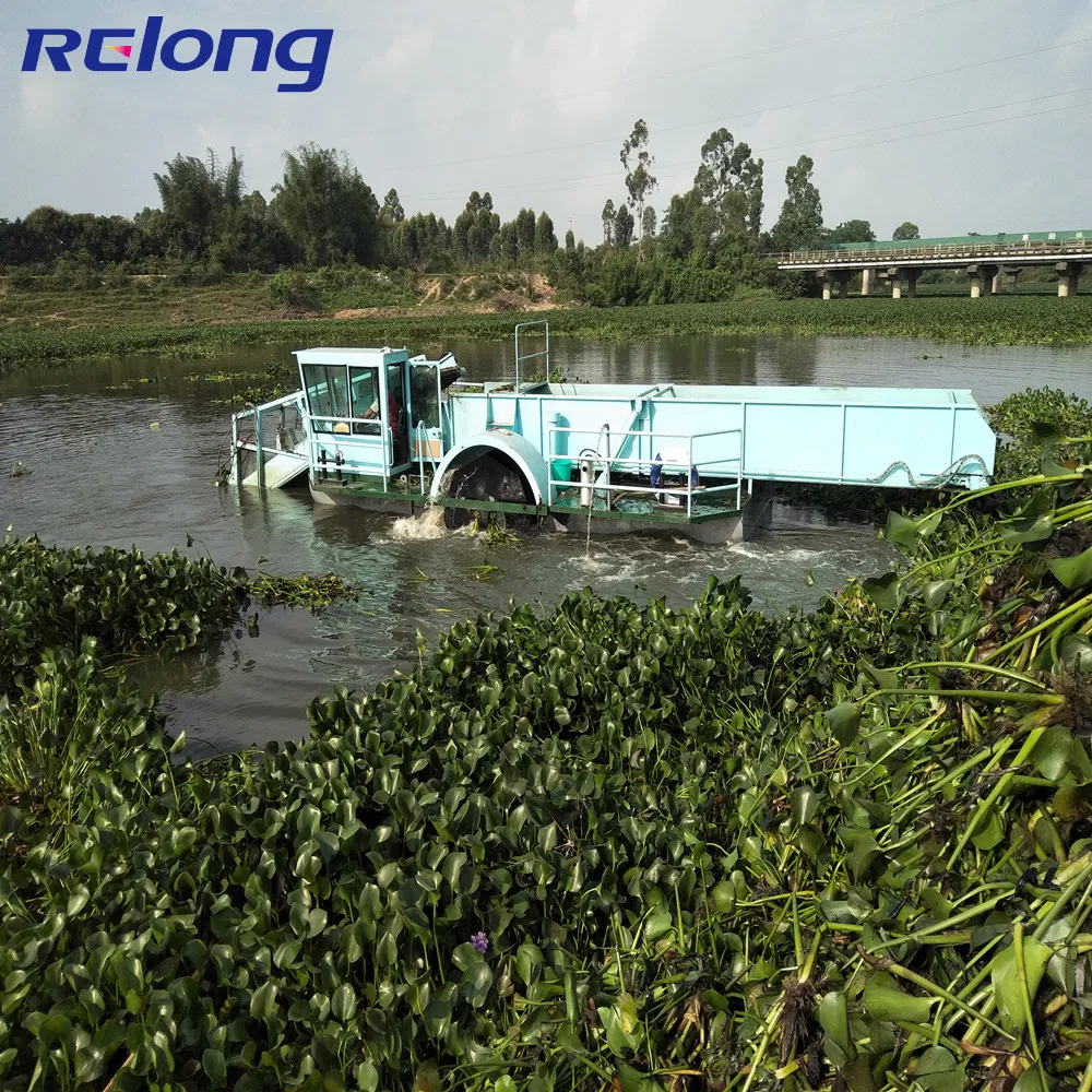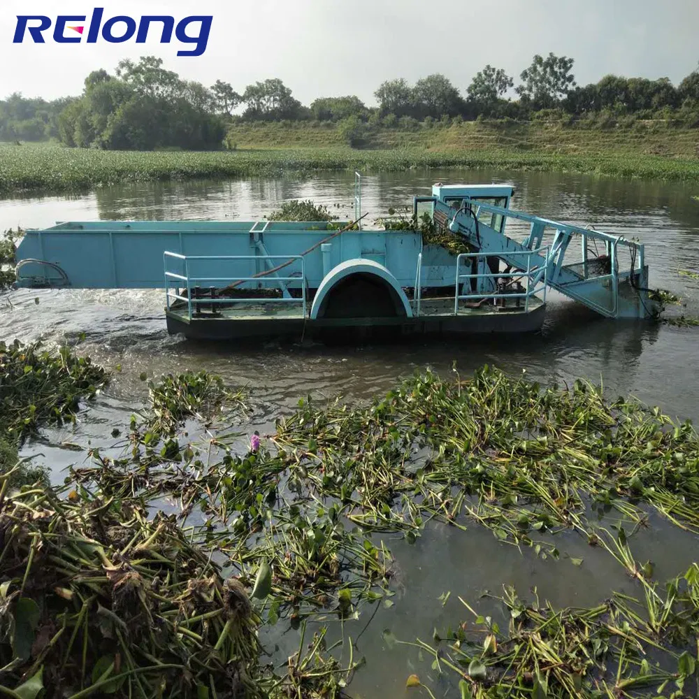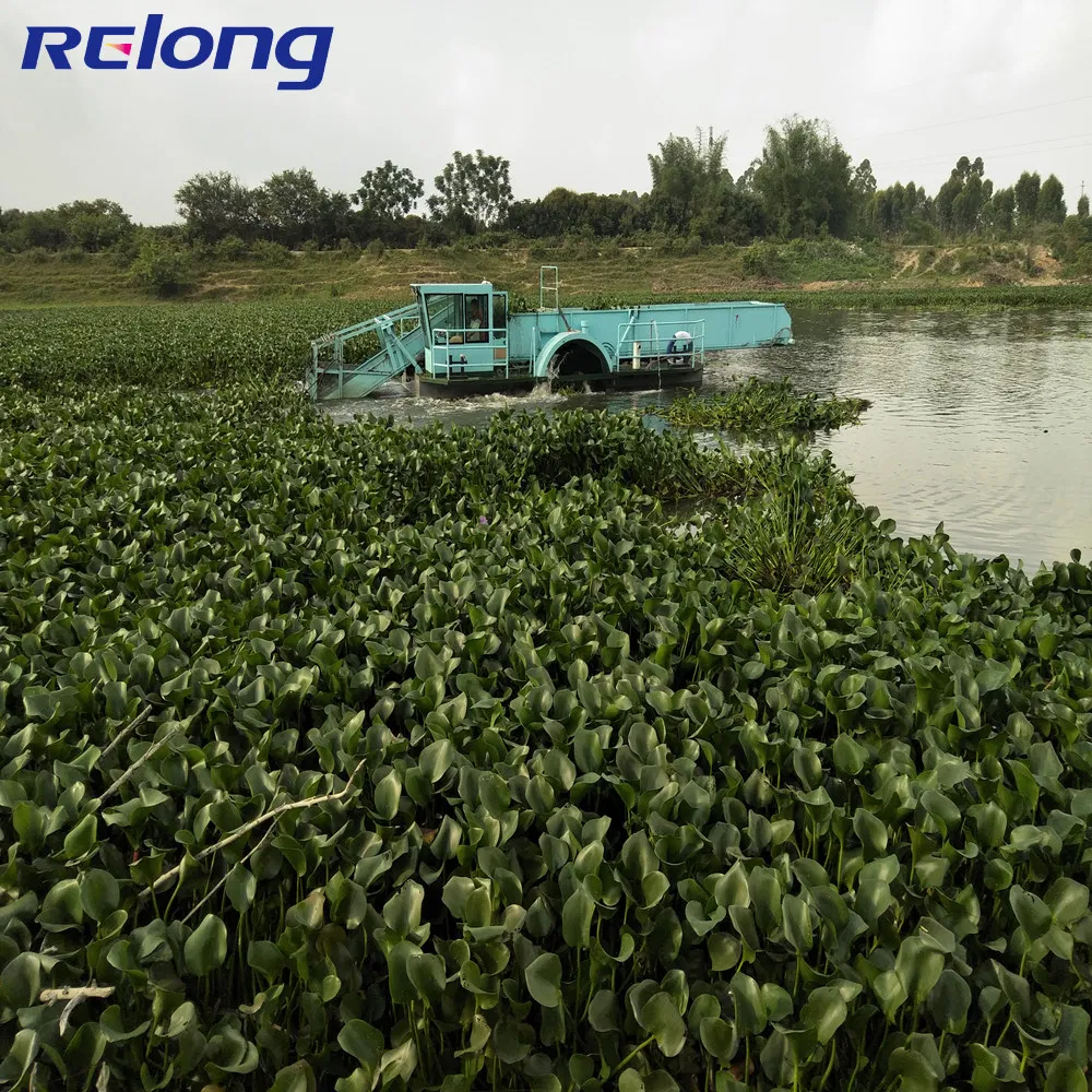 2.Features: 1) Weed harvester is mainly used to salvage the water hyacinth and alligator weed in rivers and lakes, and it can also collect floating garbages in the water surface.