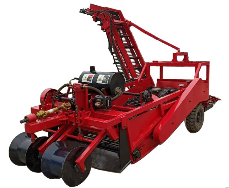 the 4U-3 series Potato harvester/white potato harvesting machine/purple sweet potato harvesing equipment is mainly used to harvest underground rootstock crops such as potatoes, garlic, sweet potatoes and peanuts. The machine has the characteristics of high harvesting efficiency, low damage rate, light operation, no vibration, no grass blocking, fast soil leakage, simple structure and long service life. The machine adopts a side-by-side automatic loading device to make up for the shortage of small harvesters that can not automatically collect crops, improve production efficiency and save manpower and material resources. The machine has obtained two patents for utility model and design approved by the National Patent Office.