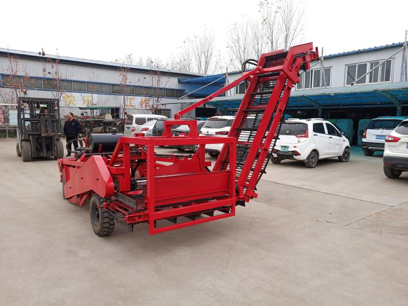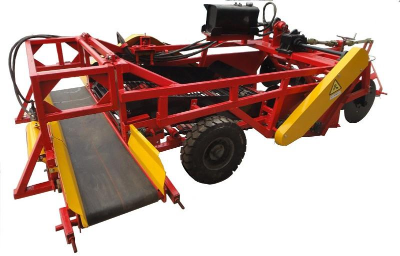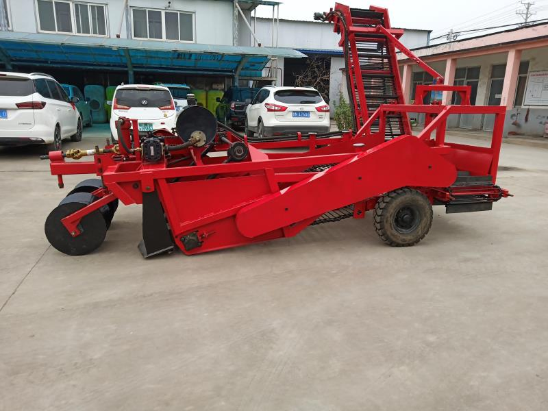 The tractor and the harvester are connected by a drive shaft and driven by the power output shaft of the tractor to drive the working screen. The digging shovel will shovel the crops to be harvested. The two sides of the disc cut the soil and the weeds. Digging the shovel and shovel the soil into the soil. The conveyor chain transports the potatoes backwards. The crops are transported to the rear by the rotation of the working sieve chain. In the device, during the transportation process, the vibration of the vibrating wheel of the universal Nazan is effective to separate the crop from the soil. The rear lifting device uses the side loading device to load the crop into the transport vehicle on the right side, saving manpower and material resources and improving production efficiency.