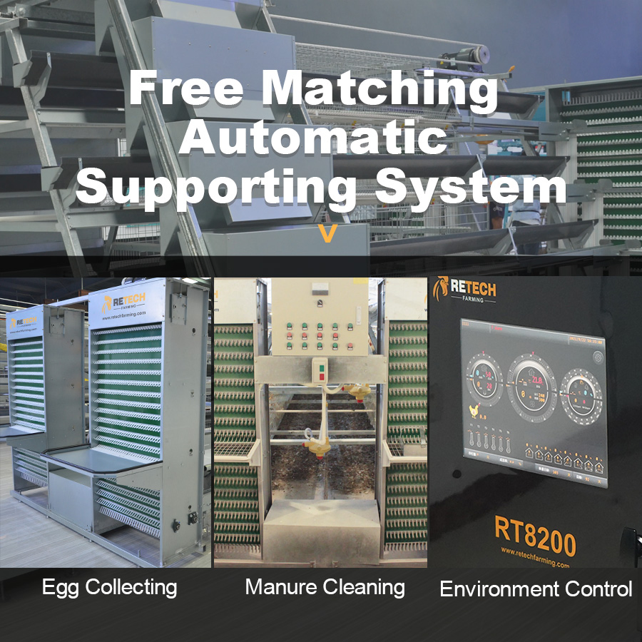 RETECH LAYER CAGE MANUFACTURER10% more eggs> Comfortable and Safe Feeding Environment> Eggs Damaging Rate as Low as 0.3%> Higher Egg Production Rate> Reasonable Area Per Bird> Mortality In The Whole Raising Process Is Only 5%>Reasonable Design3-4 Tiers Battery Cage:reasonable heigh......