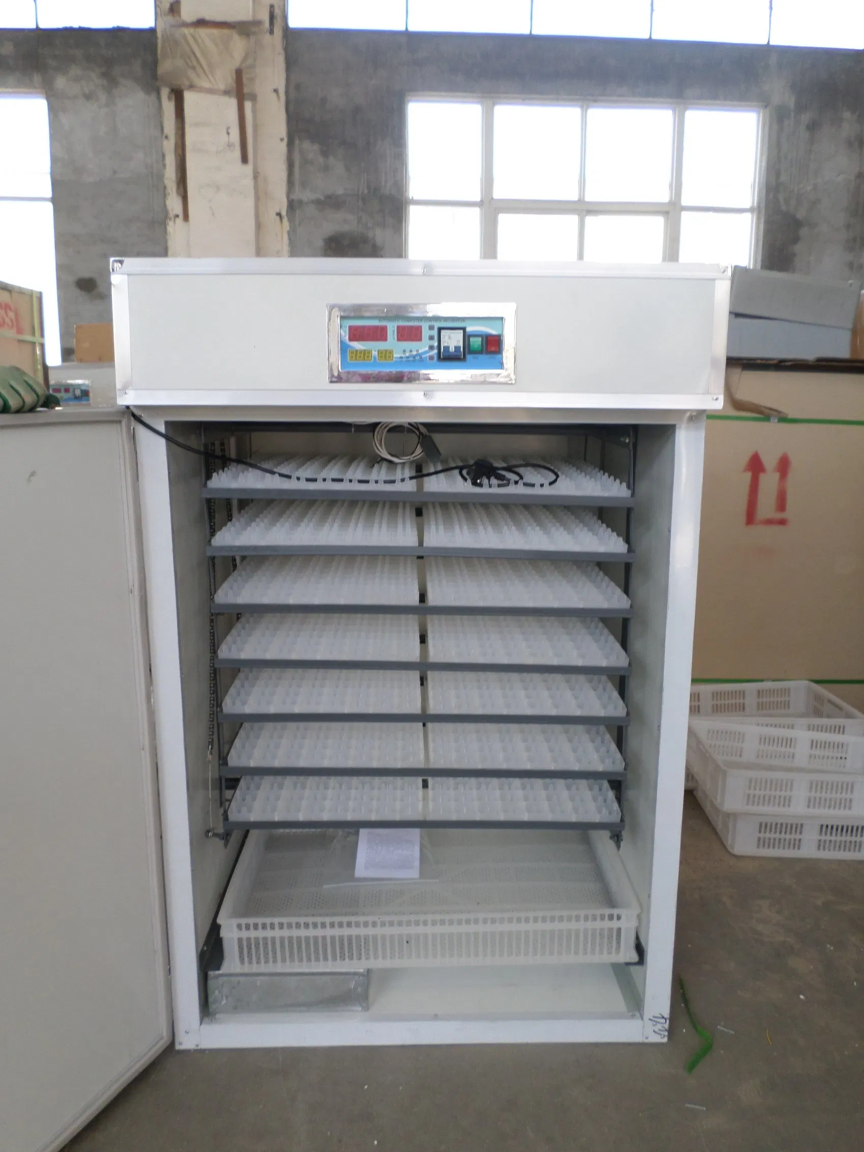 Holding 1000 Egg Poultry Pheasant Automatic Incubator for SaleDetails of Egg Incubator(1)Capacity: 1056 chicken eggs 756 quail eggs 2652 duck eggs 384 turkey/goose eggs(2)Sizes(L*H*W): 100*71*136CM(3)Weights:85 kgs(4)Voltage:110V~120V,220V~240V(5)Frequency:50HZ-60HZ Temperature: 37.5 ~ 38Deg......