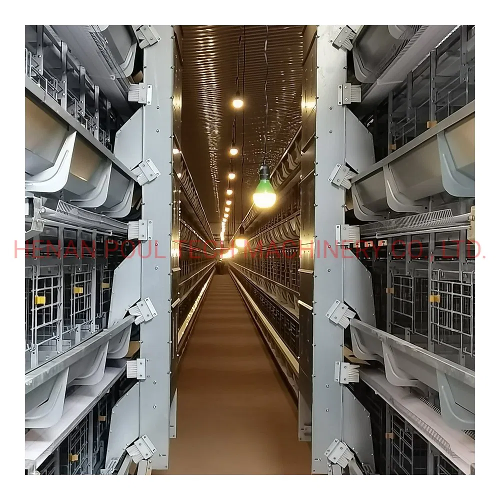 Availability to adjust the required level of feeds thanks to the feeding system consisting of feed cart(trolley hopper) and dispenser apparatus that are automatic and made of galvanized sheet and dyed sheet. All feeding system are connected with the feed silo(with feed elevator and silo weighing system) and operated automatic.Layer Chicken Better Cage for Poultry Farm