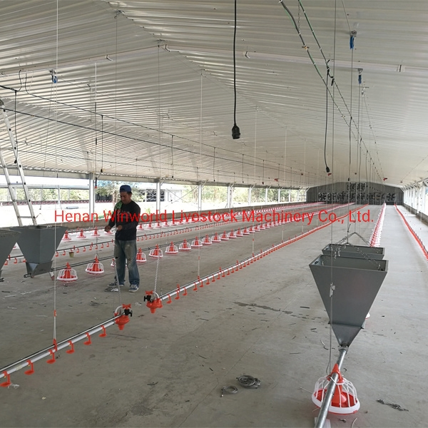 Poultry Farming Equipment Broiler Feeder Pan/Pan Feeding SystemIntroduction:1. Floor Raising System,also named Deep Litter System consist of Automatic Pan Feeding System,Automatic Drinking System, Ventilation system,Environment control system,Cooling pad & heating system,provides better living e......