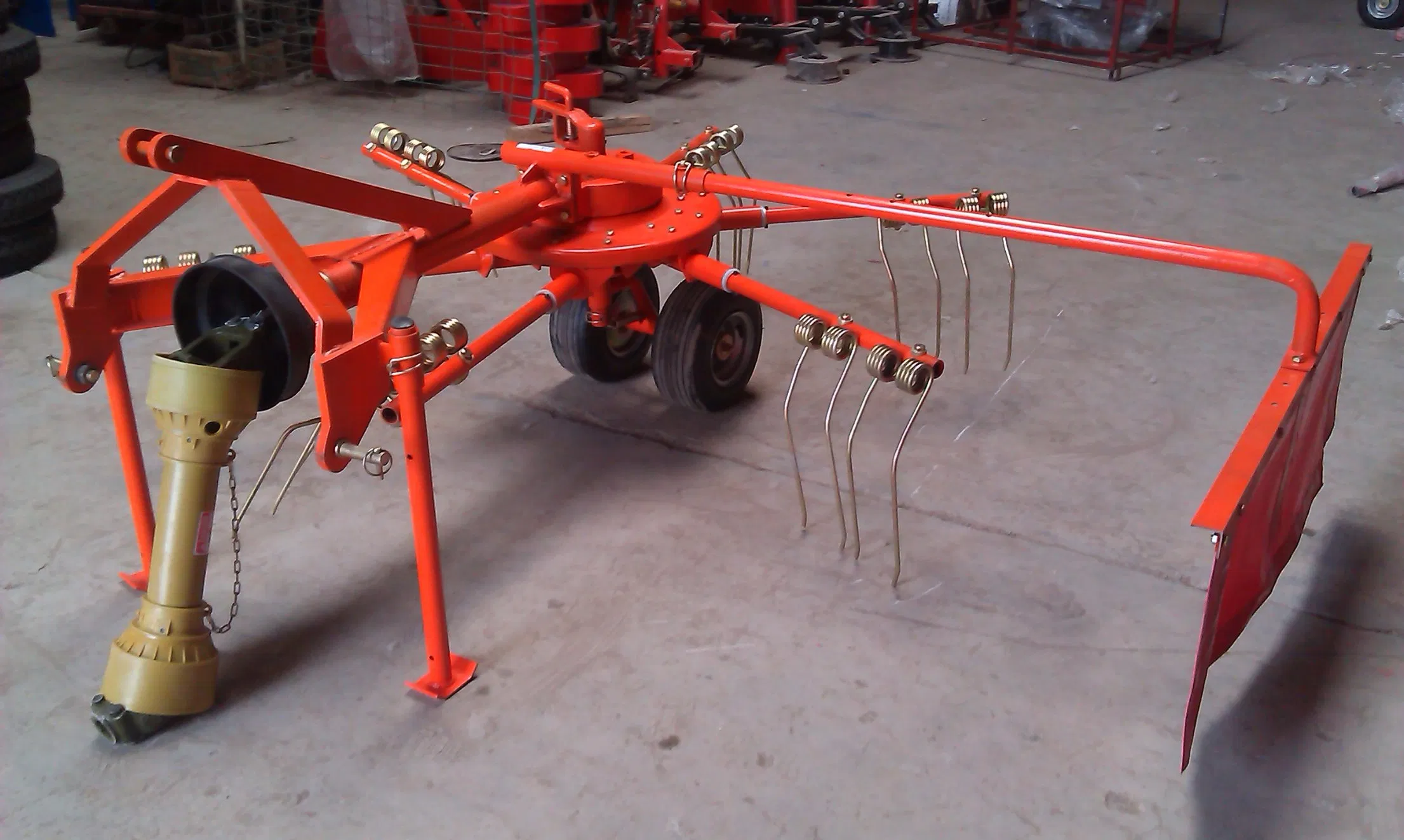 Advantages1) This slashing hay rake can cut and collect the grass at the same time.2) it is connection on tractor PTO 3) Hydraulic system to lift and down freely.4) It is a tractor trailed rake for 25-40hp tractor.Suspension Type:Three-point suspensionpower required (hp):25~40Weigh(kg):120Effi......